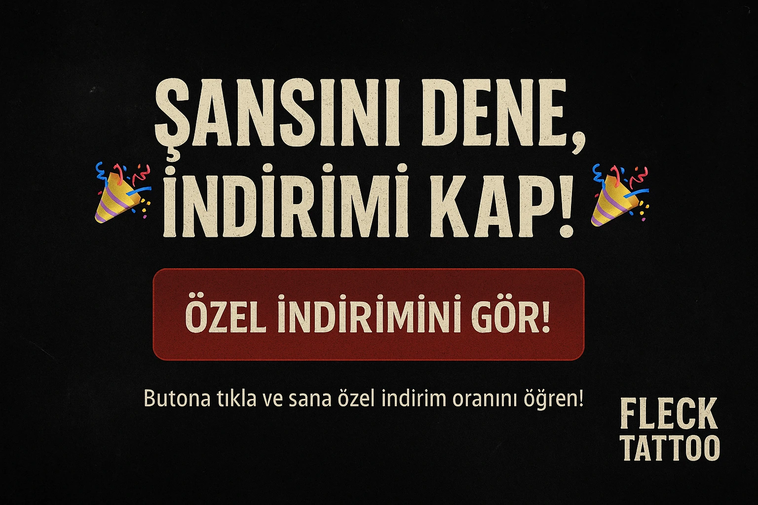 🎉 Fleck Tattoo Doğum Gününüzü Kutluyor! 🎉 Fleck Tattoo’da doğum gününüze özel tüm dövme modellerinde %30 indirim fırsatı! Ömür boyu taşıyacağınız bir dövme için Fleck Tattoo ile iletişime geçin. Doğum gününüzde hemen randevu alın, indirimli dövme fırsatını kaçırmayın! Dövme Sanatçınız ile İletişime Geçin!
